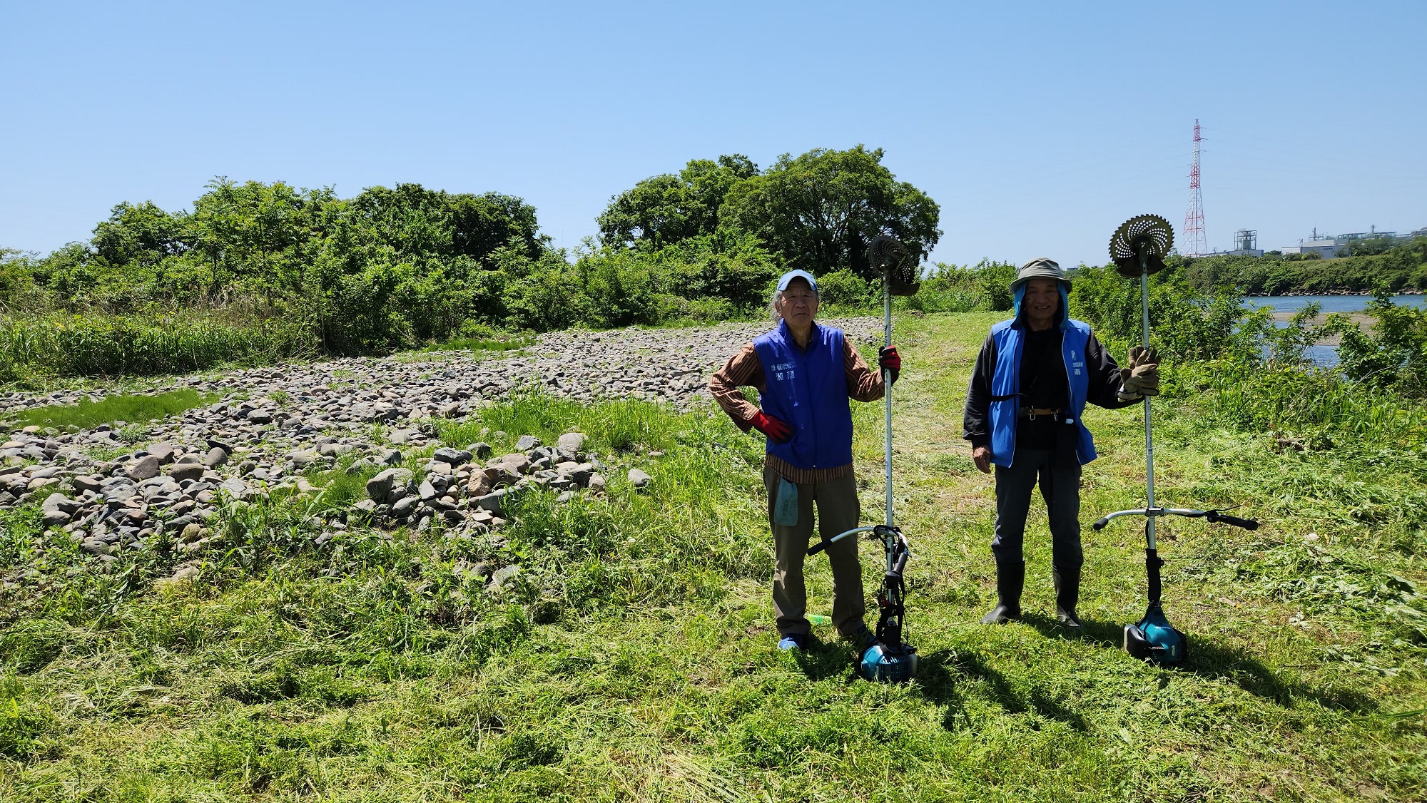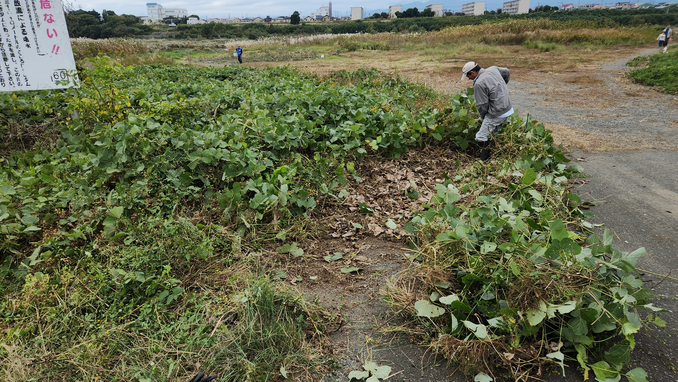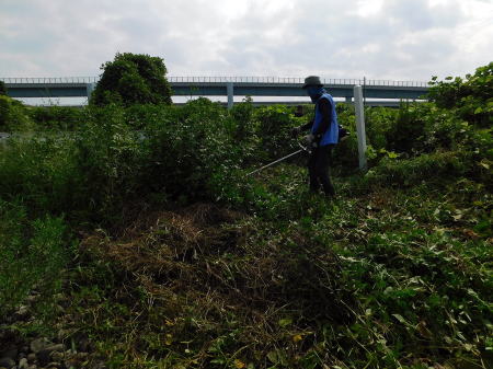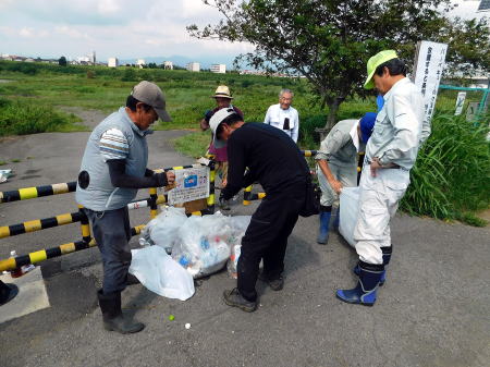 シナダレスズメガヤ抜き取り(除去)、河原のゴミ拾いも行っています