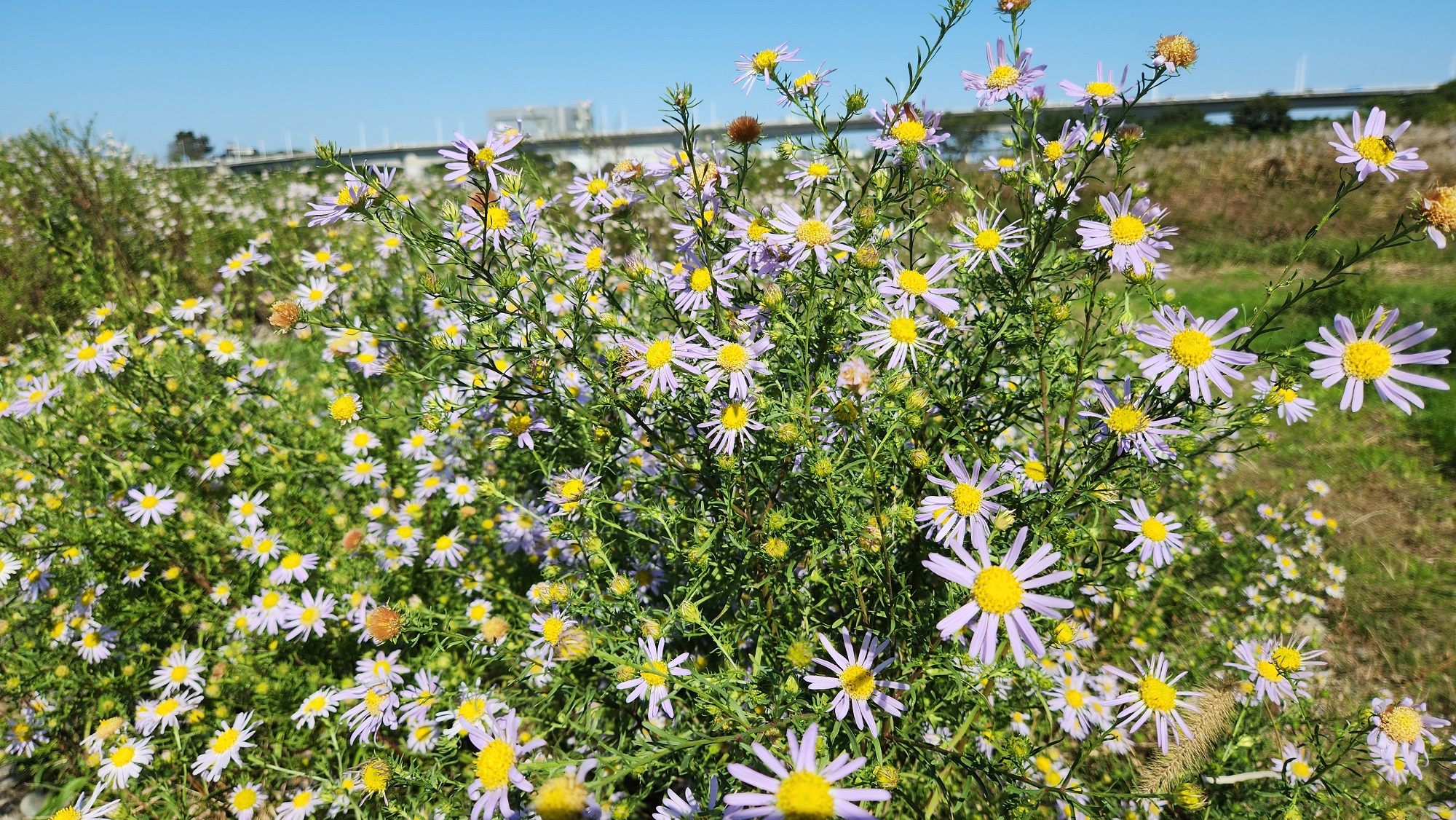 相模川神川橋下流保全地、満開のカワラノギク