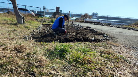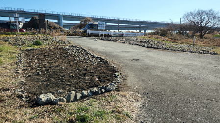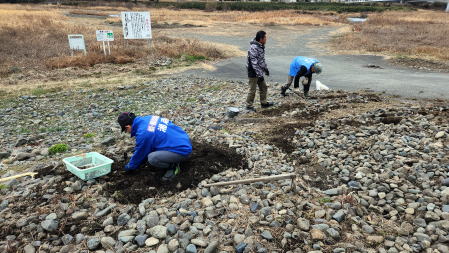 2022年2月20日 相模川神川橋下河原の新圃場でカワラノギク種まき準備