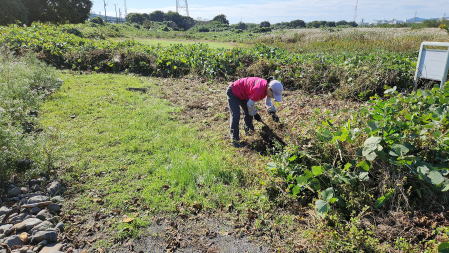 ・枯れた茎の除去 最下流の圃場 ・圃場周りの草刈り