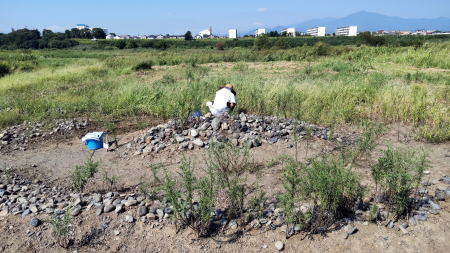 相模川下流域 神川橋下河原でのカワラノギク復元活動