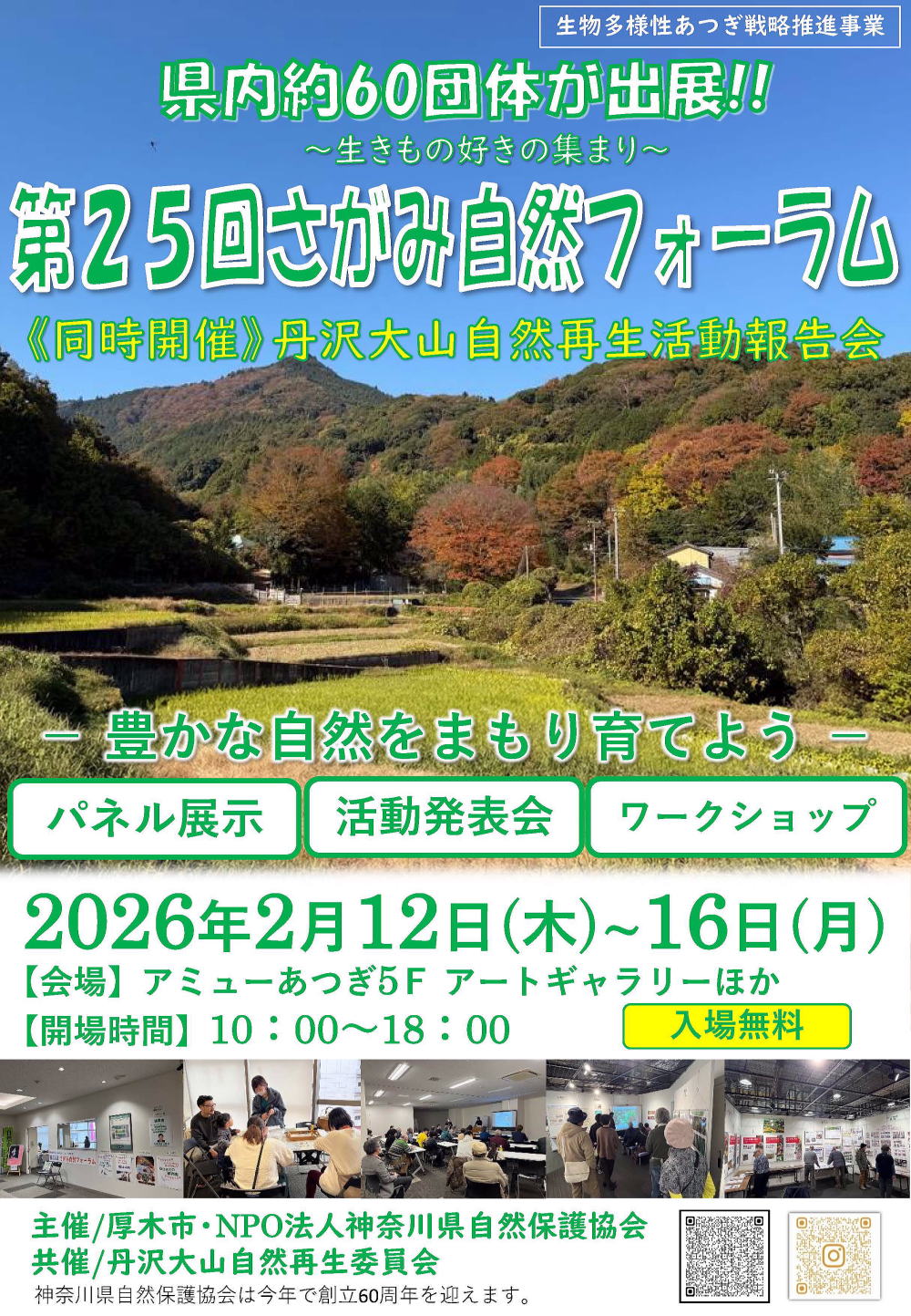 ・2026.01.21 行事予定表更新しました ①第7回幹事会2/19(月)13:30~ ※Zoomオンラインで開催 ②第2回流域シンポジウム実行委員会 ※幹事会に引き続き開催~16:00まで ・2026.01.11外部交流イベント紹介します 第25回さがみ自然フォーラム開催案内(2/12~) ※イベントのお知らせ掲載 ・2026.01.10 行事予定表更新しました 2/19月)第6回幹事会、2026年第1回流域シンポ実行委員会 ※開催通知掲載 ・2026.01.10「かながわプラごみゼロ宣言」イベント紹介 1/21(水)13:15~15:15 かながわプラごみ削減オンラインフォーラム開催 ※Zoomによるオンライン開催 未来を創る技術 ~環境配慮設計からリサイクル技術まで~ ※申し込みは右欄チラシの二次元コードから ・2026.01.06 カワラノギク保全活動更新しました 1月初旬から神川橋下流河川敷で採種と抜き取った茎を玉石の上に定着始めました ・2026.01.04「水源環境保全」外部イベント紹介します 第60回水源環境保全・再生かながわ県民フォーラム 令和8年2月7日(土)13:00~16:30 かながわの森と水~これまでの20年から次のステージへ~ ・2025.12.24 カワラノギク保全活動更新しました 外部との交流】天竜川流域(中川村)ツツザキヤマジノギク保全交流報告が見れます ・2025.12.19 行事予定表更新しました 2/5(木)10:00~あじぇんだ113(56号)第2回編集会議 ※Zoomオンライン開催 ・2025.12.19 行事予定表更新しました 2/2(月)13:10~16:00 第6回市民部会 場所:サン・エールさがみはら+Zoomオンライン開催 ・2025.12.18 行事予定表更新しました 2026年1/19(月)13:30~ 第6回幹事会 ※Zoomオンラインで開催 ・2025.12.01 行事予定表更新しました ①12/18(木)10:00~あじぇんだ113(56号)編集会議 ②12/18(木)13:30~第5回幹事会 ※①、②共にZoomオンライン開催 ・2025.11.23外部団体のイベント参加 第19回ひらつか市民活動センターまつり 日時:11月23日10:00~15:00 パネル展示及び活動紹介 ・2025.11.17外部団体のイベント紹介 第25回さがみ自然フォーラム 日時:2026年2月12日(木)~16日(月)※出典参加準備中 ・2025.11.15外部団体のイベント参加 茅ヶ崎市の特別緑地保全地区 清水谷の自然環境を保全する活動・竹林伐採作業 ・2025.11.14全国川ごみネットワークイベント紹介 第11回川ごみサミット参加者募集中 ・日時:12/20(土)11:00~16:30 ・会場:同志社大学 東京サテライトキャンパス+オンライン ・参加申申込:12/17(水)締切 ・2025.11.11 行事予定表更新しました 12/8(月)10:00~第5回市民部会開催 ※今回はZoomオンラインで開催 ・2025.11.10かながわプラごみゼロ宣言チラシ掲載しました 右欄の「相模川クリーンキャンペーン」の二次元コードからLINE友達になれます ・2025.11.06会報誌 アジェンダ113(55号)発行掲載しました 創刊号からの会報誌が「会報誌 アジェンダ113」ページで閲覧できます ・2025.11.05会員からのイベント紹介掲載しました やまなし森づくりフォーラム 2025 11/14(金)13:00~会場及びオンライン同時配信 ・2025.11.04カワラノギク保全地調査実施しました 明治大学農学部 倉本教授と相模川の保全地を巡り生息状況を確認 ※更新履歴一覧(2025年10月以前)は