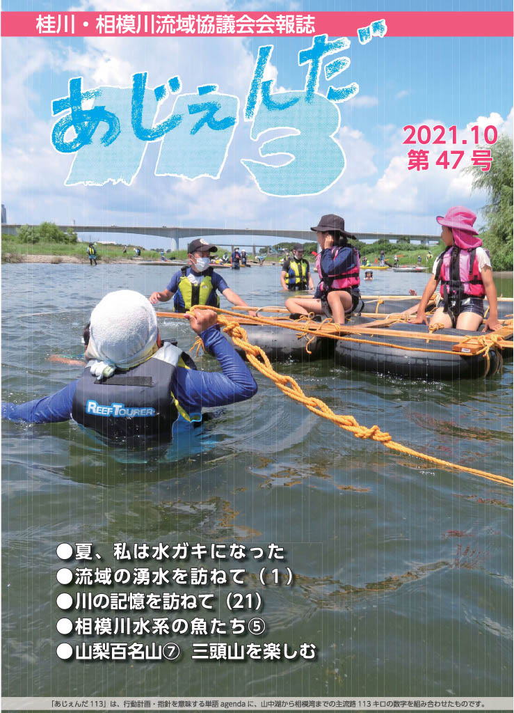 *クリーンキャンペーン、カワラノギク保全活動は各ページで確認ください。 〔石倉カゴによるウナギ生態調査 4月~9月)〕 ![]() 第1回石倉カゴ調査の結果が見れます 2022._unagi_1.pdf へのリンク 第2回石倉カゴ調査の結果が見れます 2022._unagi_2.pdf へのリンク 第3回石倉カゴ調査の結果が見れます 2022._unagi_3.pdf へのリンク 第4回石倉カゴ調査の結果が見れます 2022._unagi_4.pdf へのリンク 第5回石倉カゴ調査の結果が見れます 2022._unagi_5.pdf へのリンク 〔地下水・湧水調査_相模原市大島のヤツボ 8月19日〕 ![]() 〔上下流交流_上野原市八重山で森林体験 7月17日〕 ![]() 〔外部との交流_湘南学園校外学習支援 7/1,7/6〕 ![]() 石倉カゴによるウナギ生態調査 ![]() ![]() 2021_unagichousa_3.pdf へのリンク 第21回さがみ自然フォーラム ~SDGsから自然を考えよう~ 3D・VR展示会 〔視聴期間〕 令和4年2月12日~5月15(日) ”VR(バーチャル・リアリティ)で会場での展示内容が見ることができます” ☣http://sagami-forum.3D-VR.jp ![]() 写真をクリックすると拡大して見ることができます 2021年度 絶滅危惧種カワラノギクの種取りを行ないました ・相模川右岸 六倉圃場:2022年1月8日(土) 桂川・相模川さがみ地域協議会 ![]() ・相模川左岸神川橋下河原圃場:2021年12月26日 相模川湘南地域協議会 ![]() 2021年度『桂川・相模川流域シンポジウム』を実施しました。 ![]() 相模川の河原でカワラノギクのお花見を行いました 相模川下流神川橋下河原(10/31、11/7)、相模川中流六倉河原(11/13) ![]() *新たに「カワラノギク保全」のページを設定しましたのでご覧ください。 「アジェンダ113 47号」掲載しました。 ![]() agenda113_47.pdf へのリンク 2021年度『寒川の河原の自然で遊ぼう』を開催しました。 相模川湘南地域協議会、寒川町環境課共催 ![]() ![]() ![]() *「寒川の河原の自然で遊ぼう」実施内容をyoutubeの動画で確認できます。。 九州大学オンライン講座「海洋プラスティック汚染」を2名の会員が修了しました。 Certificate(修了証書)、デジタル証明付きオープンバッジをもらいました。 ![]() 2021年度『アジェンダ21 桂川・相模川』 環境調査事業 「ウナギの生態と分布調査」について紹介します。 相模川左岸での石倉カゴ設置内容を紹介します。 (相模川左岸での石倉カゴ設置) 動画でご覧いただけます。 2021年度前期の石倉カゴ調査(5月、6月、9月)を紹介します。 (2021年度前期の石倉カゴ調査) 2021.7.24(土) 2021年度「水ガキ養成講座」を実施しました。 日時:7月24日(土)9:30~15:00 参加者:約100名 *「生き物採捕のガサガサ」、「カヌー」、「タイヤのいかだ」で、子供たちの笑顔と歓声が相模川の水面に響き渡る一日でした。 ![]() ![]() ![]() ![]() ![]() ![]() 生活排水学習会